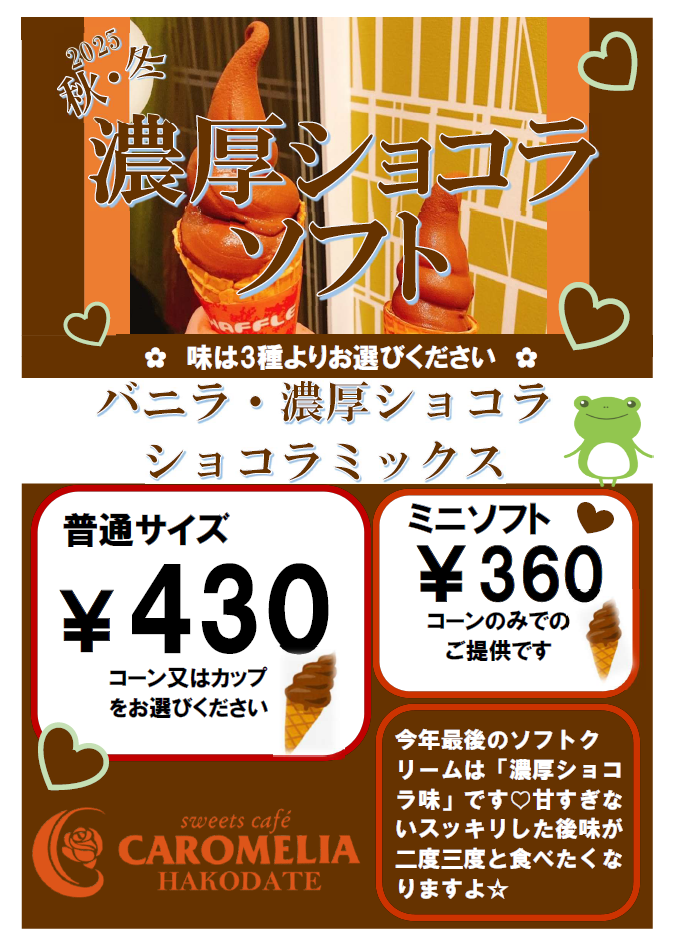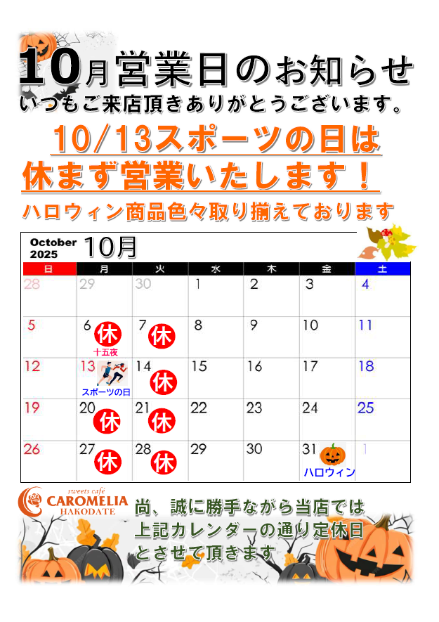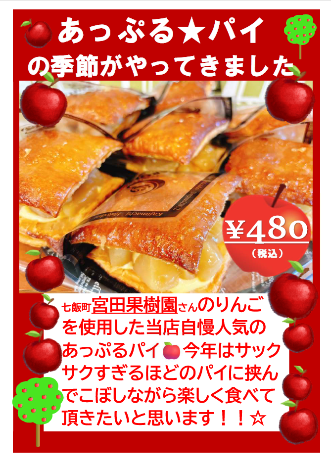 涼しさが増し秋を感じるこのごろです。秋と言えば美しい紅葉や収穫の喜びに満ち溢れた季節です。身近に秋を感じる言葉を思い感じながらおいしいお菓子や果物などを食べるのは至福の時間ですね❁当店の秋商品「秋の花スペシャルソフトパフェ」やハロウィンまでの限定「ハロウィンソフトパフェ」りんごの季節にちなんだ「リンゴパフェ」や「あっぷるパイ」も是非どうぞ★