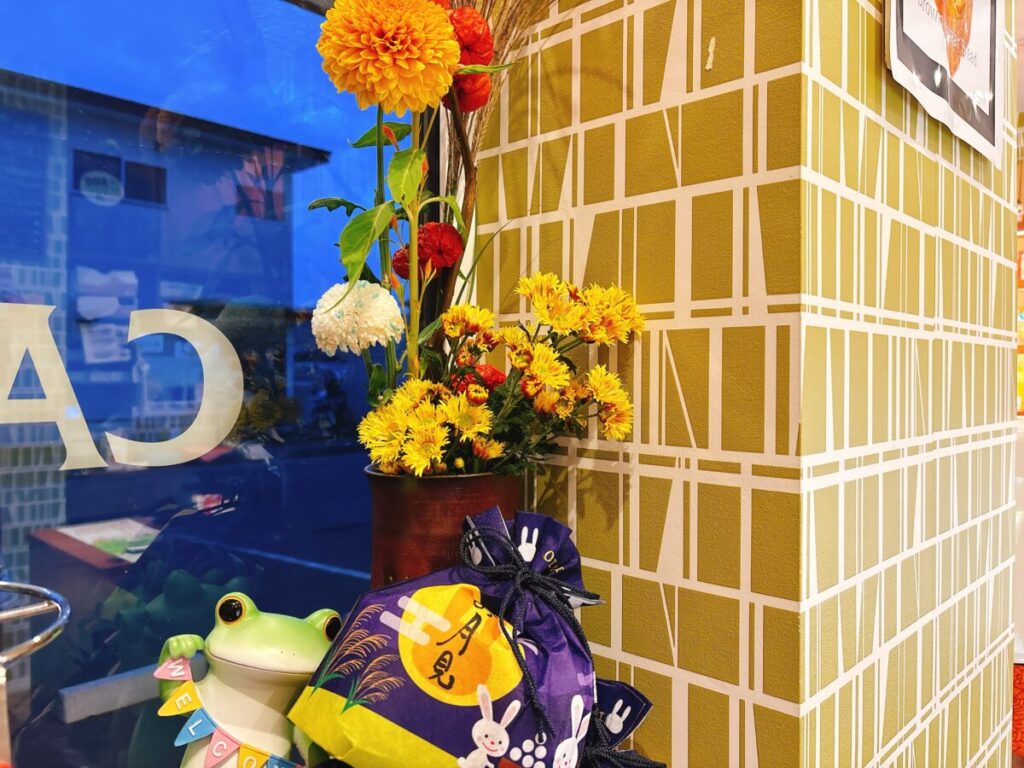 店内もススキを飾り十五夜さんの雰囲気でお出迎えいたします❁十五夜ギフトもどうぞお買いもとめくださいませ★