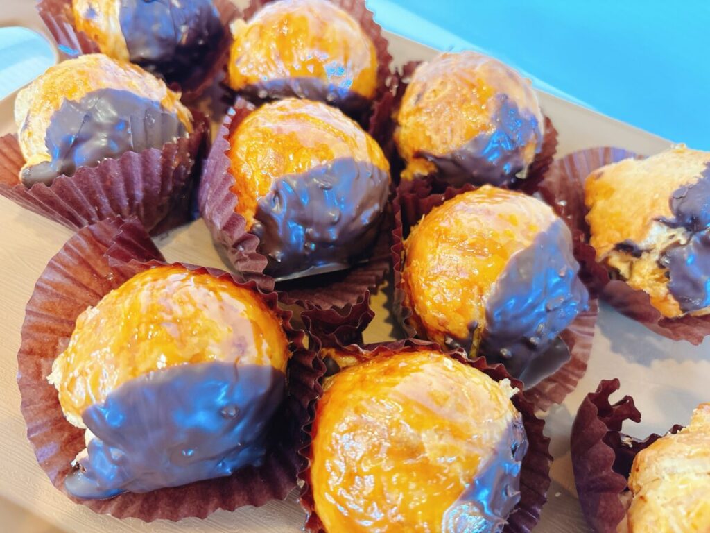 秋は「くりくり坊主」が食べたくなります♥ 2025年10月26日 Filed under: スタッフのおすすめ カロメリア 栗がまるごと1個入ったマロンパイ★「くりくり坊主」栗の形に焼き上げました!1個食べたら満たされる~満足感がありますよ~ 栗がまるごと1個入っています★チョコでコーティングしたら見た目も栗に見えてくる~★秋のこの季節に是非どうぞ