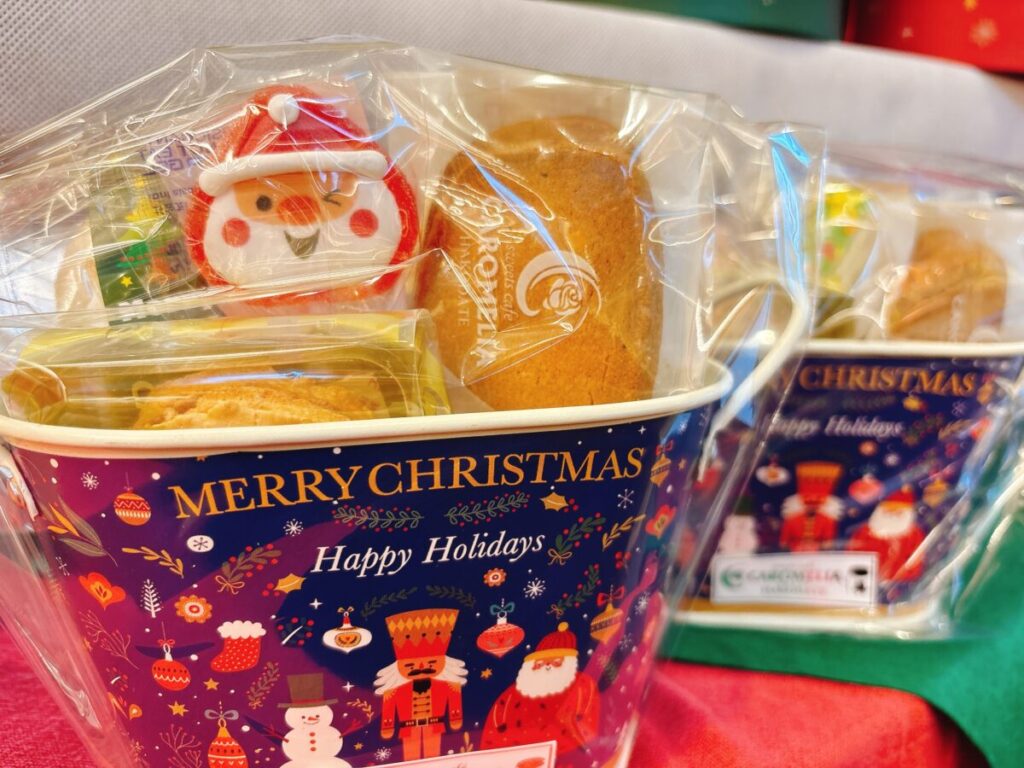 サンタさんのイラストがかわいいクリスマス焼菓子BOX★人気のお菓子がたくさん詰まった「オーナメントコンチェルト」プレゼントに是非どうぞ★