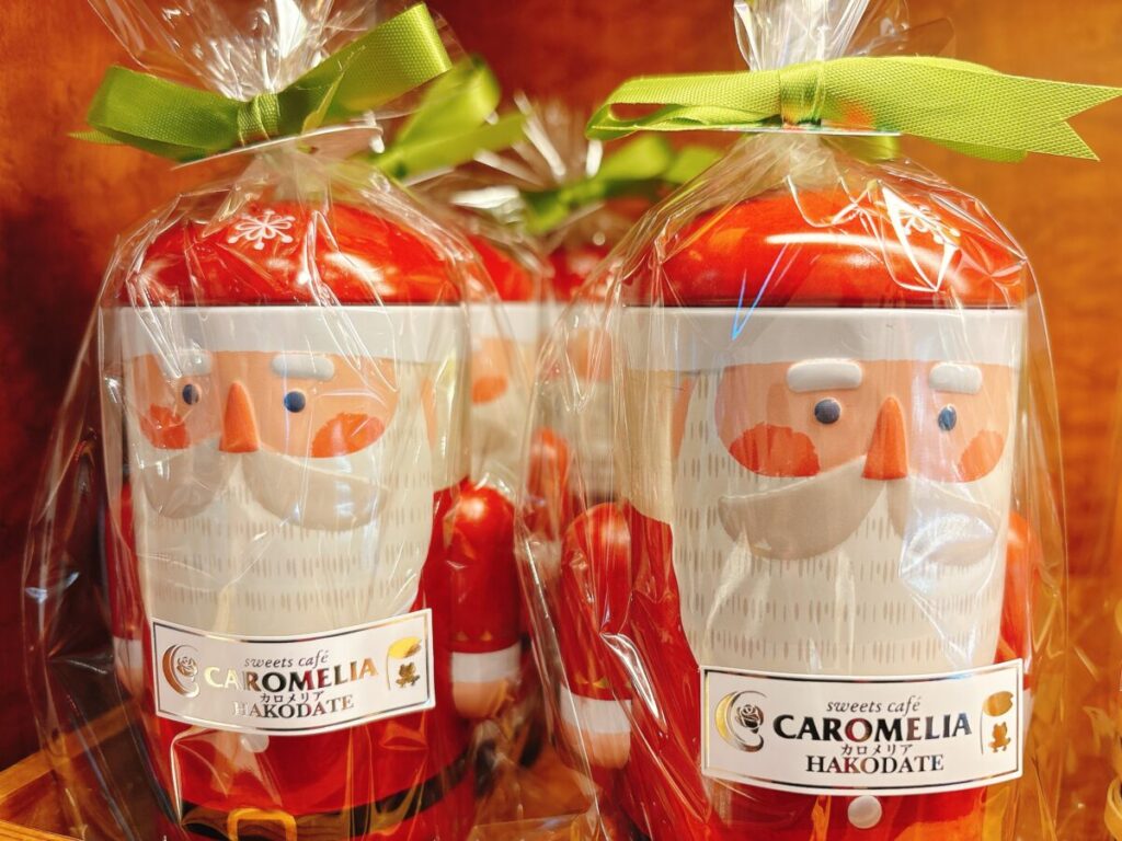 可愛くって面白い★サンタの形の縦長筒形ブリキ缶GIFT!お菓子2点入りのクリスマスプレゼント♡