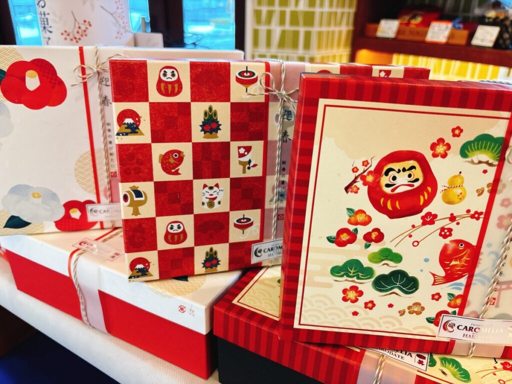 年末年始のご挨拶GIFTもたくさん!! 2025年12月29日 Filed under: 季節のおすすめ カロメリア 定番の焼菓子ギフトからお正月らしさ満載の可愛いGIFTまでたくさんご用意しております★贈られた方のセンスが光る素敵なおもてなし 3種類の絵柄から選べる「四季のギフト」お正月バージョン!!贈る方も贈られる方も笑顔になれる素敵なGIFTです! シマエナガちゃんの可愛いイラストが描かれた冬のギフト「冬びより」はこの季節の人気商品となっております。今年もあの方へと思いを寄せながら選ぶのも楽しいひと時です…♡