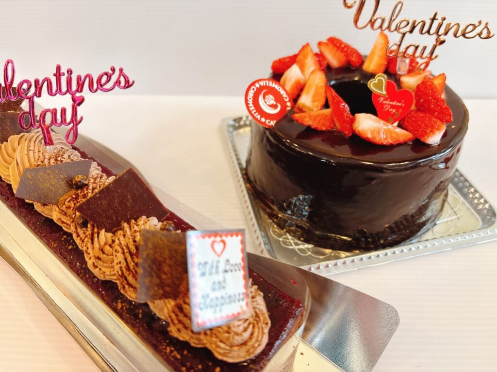 ♡VALENTINE♡ホールケーキ販売中 2026年1月27日 Filed under: 季節のおすすめ カロメリア チョコとベリーの美味しさ詰まったバレンタイン限定モアルーアールグレイキャレ★とろ~りチョコがかかったVALENTINE限定♡ショコラシフォンも是非!! 写真手前「モアルーアールグレイキャレ」はしっとりショコラを感じながらベリーの酸味で爽やかな風味がお口に広がる今年のバレンタイン限定ケーキ♡写真右奥「カロメリアンショコラシフォン」ふんわりシフォン生地をとろ~りチョコでコーティング♡いちごの甘酸っぱさが加わり王道の美味しさ!