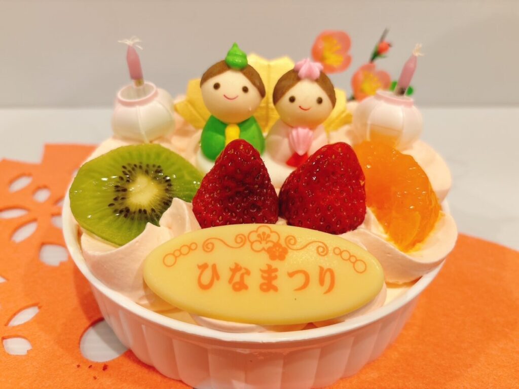桃の節句デコロング・ひなデコケーキ(生クリーム&生チョコ)小さなカップショート等々♡他にも雛フロマージュや雛プリンアラモード等のホールケーキもご準備しております!是非お買い求めください✿