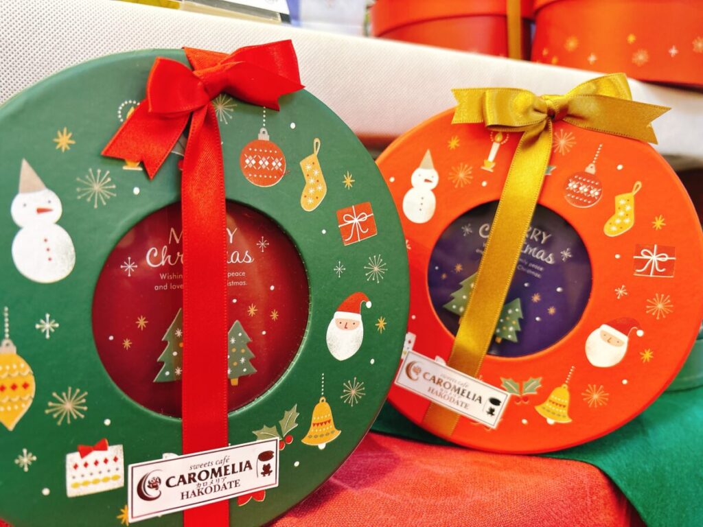 グリーンが映えるクリスマス感あふれる焼き菓子ギフト★円い筒型がとってもキュートで愛らしいと好評の「リンリンサンタ」食べちゃったあとも小物入れなどに再利用できるのもうれしいかも~(´▽`)